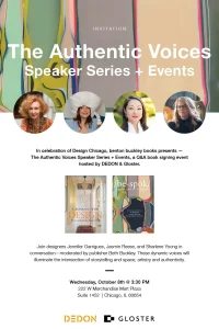 In celebration of Design Chicago, benton buckley books invites you to an afternoon of conversation, creativity, and connection — The Authentic Voices Speaker Series + Events, a Q&A and book signing hosted by DEDON & Gloster.
